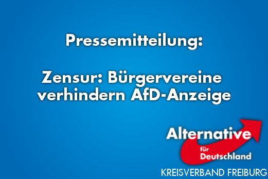 „Das ist nichts anderes als Zensur“, sagt Dr. Detlef A. Huber, Stellvertretender Kreisvorsitzender der AfD Freiburg und selbst Mitglied im Bürgerverein Landwasser. „Es ist traurig, zu sehen, mit welchen Mitteln angeblich überparteiliche Bürgervereine arbeiten, nur um eine Anzeige der AfD zu verhindern. Sie verzichten dafür sogar auf gute Werbeeinnahmen - von allen Parteien“ führt Dr. Huber weiter aus.