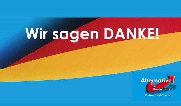 Der Kreisverband Ortenau der Alternative für Deutschland bedankt sich herzlich bei allen Wählern, die uns am vergangenen Sonntag zu diesem sensationellen Wahlerfolg mit ihrer Stimme verholfen haben.