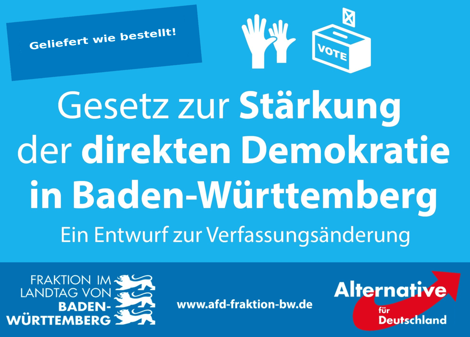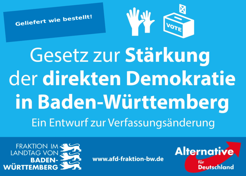 Bereits mit ihrer Gründung vor knapp fünf Jahren hat sich die Alternative für Deutschland als einzige wahre Verfassungspartei der Bundesrepublik Deutschland das Thema „Direkte Demokratie“ auf die Fahnen geschrieben und für eine deutliche Ausweitung der Bürgerbeteiligung eingesetzt, unterstreicht Fraktionsvorsitzender Bernd Gögel: „Direkte Demokratie ist zu wichtig, um sie der Parteipolitik zu überlassen! Dass alle Macht vom Volk ausgeht und sowohl durch Wahlen als auch durch Abstimmungen ausgeübt wird, legen sowohl Artikel 20 Absatz 2 des Grundgesetzes und Wortlaut Artikel 25 Absatz 1 der baden-württembergischen Landesverfassung fest“, betont der AfD-Spitzenpolitiker. „Doch die vorhandenen Elemente der direkten Demokratie sind verkümmert und ineffektiv. Was wir gegenwärtig vorfinden, ist ein erstarrter Parteienstaat, in dem wesentliche Entscheidungen wie die Öffnung der Grenzen durch Angela Merkel nicht im Parlament stattfinden oder nicht das Wahlergebnis widerspiegeln, wie die momentane Kungelei um die eigentlich abgewählte Große Koalition aus CDU, CSU und SPD mehr als eindrucksvoll unter Beweis stellt.“ Für Volksbegehren, Volkabstimmungen und Volksanträge – wie sie die Landesverfassung auch jetzt schon vorsieht – sei ein Quorum von zehn Prozent der Wahlberechtigten und eine Zustimmung von 20 Prozent aller Stimmberechtigten deutlich zu hoch, während die Sammlungsfristen zu niedrig angesetzt sind, so Emil Sänze. Zudem werden zentrale Themen wie Haushalt, Abgaben und Besoldung von vornherein ausgeschlossen.