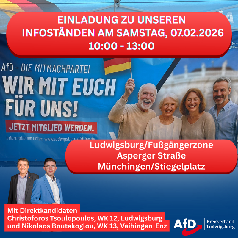 Auf dem Rathausplatz wird eine Kundgebung von Stefan Räpple, MdL stattfinden. Hierzu laden wir Sie recht herzlich ein.