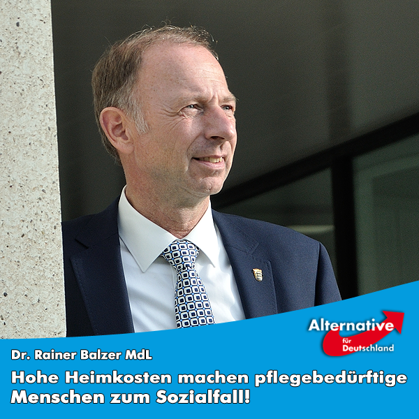 „Es ist nicht hinnehmbar, dass in Baden-Württemberg mittlerweile 27.770 pflegebedürftige Heimbewohner Ihre Pflegekosten nicht mehr bestreiten können und so zum Sozialfall werden“, so der Landtagsabgeordnete Dr. Rainer Balzer.
