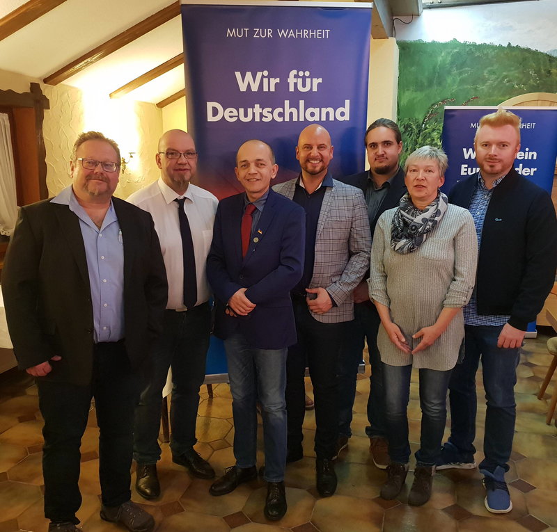 Kreisvorstand der AfD Ortenau (von links): Knut Weißenrieder (Beisitzer), Thomas Kinzinger (Sprecher), Taras Maygutiak, Stefan Räpple (beide stellvertretende Sprecher), Sebastian Neff, Sylvia Badke (beide Beisitzer) sowie Schatzmeister Daniel Hurlebaus. ©AfD-Kreisverband