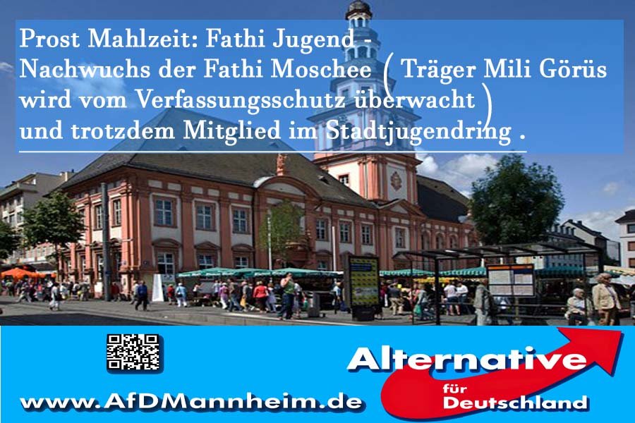 Die Jugendabteilung, die „Fatih-Jugend Mannheim“, ist als Vollmitglied in den Stadtjugendring aufgenommen worden. Der Stadtjugendring wird durch die Stadt Mannheim gefördert. Neben den indirekten Steuergeldern fließen auch direkt Steuergelder in die Hände einer Organisation, die vom Verfassungsschutz überwacht wird. Mannheim ist so bunt, offen und blind, wir merken nicht einmal mehr, wenn wir Feinde der Demokratie unterstützen.