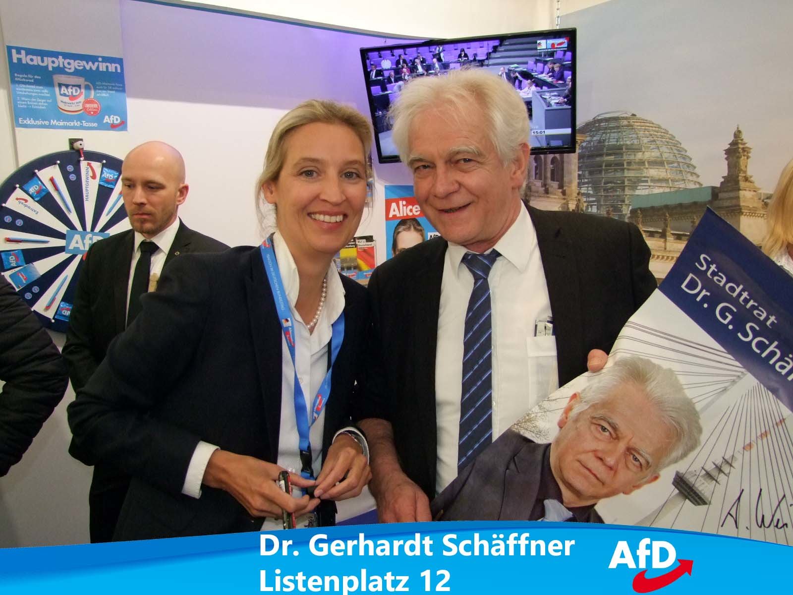 Auf dem Weg zur einer EU-Wahl-Großveranstaltung am 3. Mai in Pforzheim machte die Oppostionsführerin im Deutschen Bundestag Dr. Alice Weidel Station an unserem Stand auf dem Maimarkt. Unser amtierender Stadtrat Dr. Gerhard Schäffner begrüßte sie in Mannheim und ließ es sich nicht nehmen, sich von ihr das neue Plakat für die zweite Welle seines Wahlkampfs für die bevorstehende Wahl der Mannheimer Stadträte signieren zu lassen. Der Weidel-Auftritt geriet zu einem veritablen Heimspiel-Sieg: Kandidaten der Kurpfälzer Wahlkreise posierten gerne mit unserer bekanntesten Politikerin, vor dem Stand bildeten sich Menschentrauben, auch zahlreiche Markthändler von den Nachbarständen begehrten Selfies mit Alice.