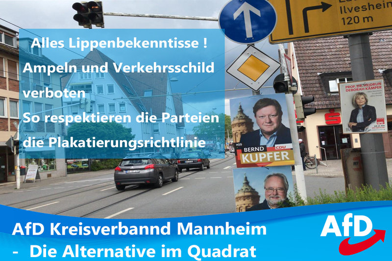 In seiner gestrigen Ausgabe berichtet der Mannheimer Morgen ( hier lesen ) , dass „ Mitarbeiter der Stadt damit begonnen hätten, die nicht nach den Plakatierungsrichtlinien aufgehängt sind, abzumontieren. Bereits Anfang April hatte die Stadt nach eigenen Angaben die Parteien, Wählervereinigungen, Gruppierungen und einzelne Bewerber in einem Brief angehalten, die städtischen Richtlinien sowie die Einschränkungen der Straßenverkehrsordnung zu beachten. Am 18. April habe es dann eine Fristsetzung bis 3. Mai gegeben. In diesem Zusammenhang gesteht die CDU Fehler ein und fordert neue Richtlinien. „Bei diesem Kommunalwahlkampf haben es alle übertrieben, auch wir als CDU. Deshalb haben viele unserer Kandidatinnen und Kandidaten zahlreiche ihrer Plakate in den vergangenen Tagen abgehängt“, wird Kreisvorsitzender Nikolas Löbel in einer Mitteilung zitiert.