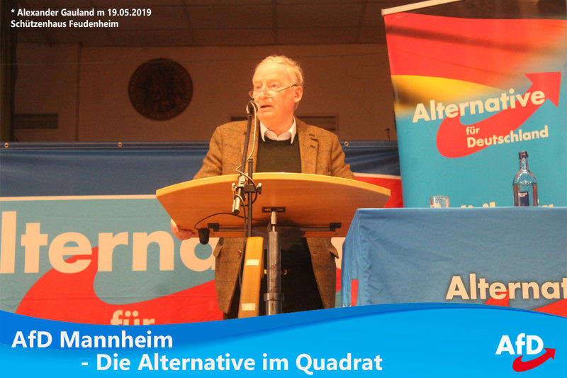 Etwa 350 Gäste waren bei der 1. Abschlußveranstaltung des AfD Mannheim im Schützenhaus, um der Rede des Fraktionsvorsitzenden der Afd im Bundestags zuzuhören.Der Saal war mit 250 Gästen bis auf den letzten Platz besetzt. Die Rede wurde ins Freie übertragen, wo weitere ca. 100 Zuhörer auf der Terasse bei einem Getränk entspannt zuhören konnten. Vor der Rede durfte sich die ersten 12 Spitzenkandidaten der Gemeinderatswahl den Z uschauern vorstellen.
