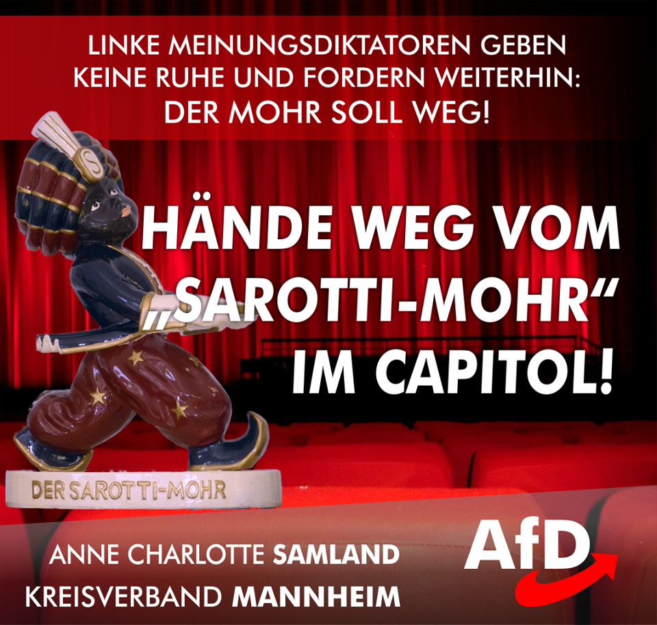 Linke "Meinungsdiktatoren" geben keine Ruhe und fordern weiterhin: Der #Mohr im Mannheimer#Capitol soll weg! +++