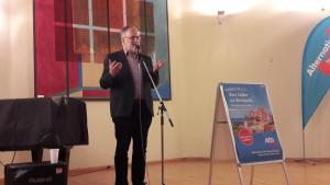 Der Vorsitzende der Christen in der (AfD) und EU-Wahlkandidat Joachim Kuhs (Listenplatz 11) sprach, gefolgt vom stellvertretenden Vorsitzenden der Juden in der AfD, Wolfgang Fuhl, am 16. Mai in Breisach am Rhein. Die Begrüßung und Einführung übernahm Kreisrat Volker Kempf, der anlässlich der Gemeinde- und Kreistagswahlen auf kommunalpolitische Aspekte einging . Gerade Breisach als Europastadt müsse anlässlich der Europa- oder vielmehr EU-Wahlen sauber zwischen Europa und der EU unterscheiden. Nach den Wurzeln Europas sei zu fragen, nach ihrem Ethos. Damit war bereits übergeleitet zu Kuhs‘ Thema „Die christlichen Wurzeln Europas“.