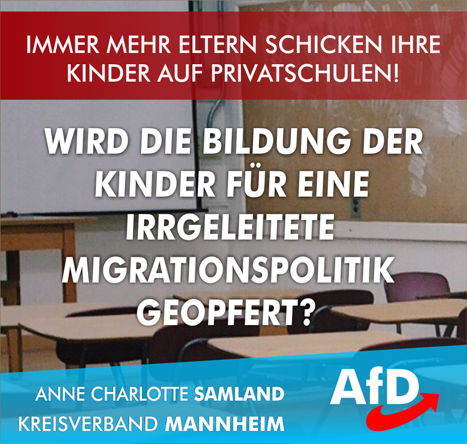 Deswegen muss von Beginn an die Frage nach Bleiberecht und Remigration gestellt werden, das würde viele, in der Folge entstehenden Probleme vermeiden. Es ist abscheulich auf dem Rücken unschuldiger Kinder die Verfehlungen der grundgesetzwidrigen Öffnung unserer Landesgrenzen auszutragen: Zum einen, dass hier geborene und sozialisierte Kinder die Einschränkungen des Unterrichtsniveaus hinnehmen müssen und andererseits Kinder der Migrationsbewegung mit einer vollkommen fremden Sprache und Kultur konfrontiert werden, die weder ihre Zukunft noch ihre Heimat sein wird.
