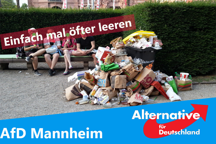 Oftmals fehlt es aber nicht an gutem Willen, den Müll fachgerecht zu entsorgen. Es fehlt schlicht an den Möglichkeiten: Mülleimer oder solchen, die nicht überfüllt überquillen. Es fehlt am Personal, das häufigere Leerungen ermöglicht. Im Mannheimer Waldpark hängt ein ehrenamtlich tätiger Rentner Plastiksäcke um Bäume, damit die Spaziergänger dort ihren Abfall entsorgen können. Mehr gibt es zu der Situation um den Müll in Mannheim nicht zu sagen. Da helfen auch keine nett gemeinten Plakate. Diese 10.000 Euro hätte man zielführender beispielsweise in neue Mülleimer investieren können. Engagement ist nur forderbar, wenn Voraussetzungen geschaffen werden.