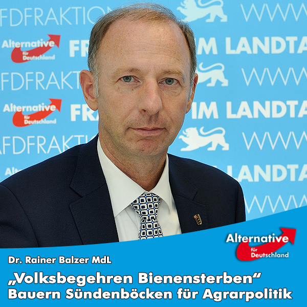 Ein weiterer Kritikpunkt der AfD am aktuellen Volksbegehren Bienensterben lautet: Das Recht schützt die Minderheit vor der Tyrannei der Mehrheit. „Landwirte haben das Recht auf Eigentum und freie Berufsausübung. Und deshalb kann ihnen auch eine Mehrheit nicht die Berufsausübung nach guter fachlicher Praxis mit amtlich zugelassenen Pflanzenschutzmitteln verbieten“, so Udo Stein abschließend.