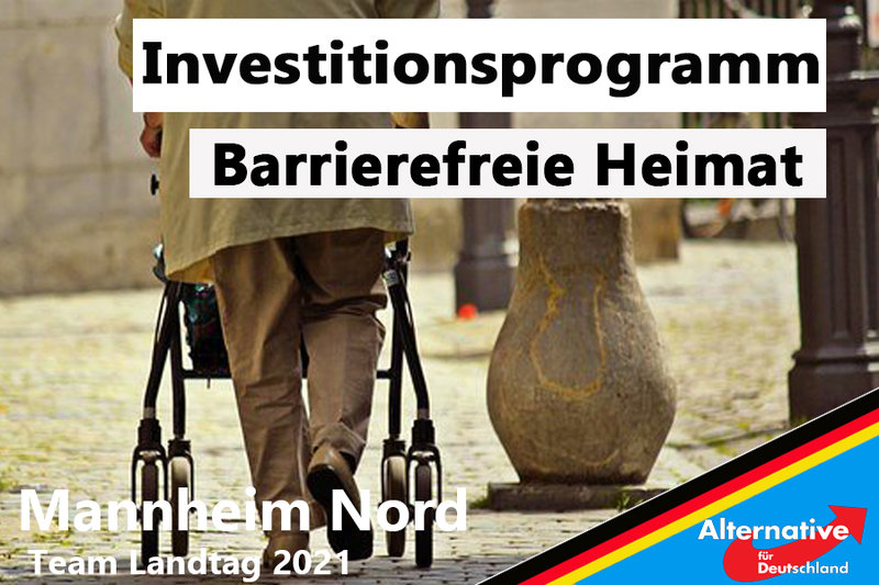 Als „Investitionsprogramm barrierefreies Baden-Württemberg“ bezeichnen Robert Schmidt Landtagskandidat im Wahlkreis Mannheim Nord für die AfD und Peter Liebenow, Vorsitzender des Afd Ortsvereins Mannheim Nord ihre Forderung, die Wirtschaft nach der Corona-Krise wieder anzukurbeln und zugleich die Infrastruktur bürgerfreundlicher zu gestalten.