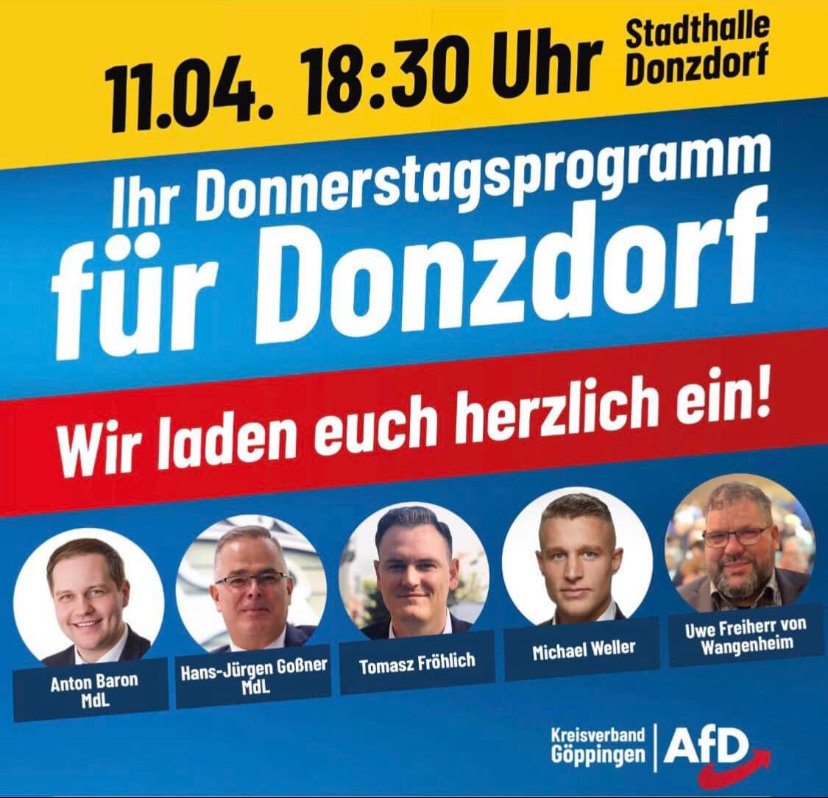 Wir laden euch herzlich zu unserem Bürgerdialog in Donzdorf ein! Am Donnerstag, den 11. April 2024 ab 18:30 Uhr in der Stadthalle in Donzdorf.