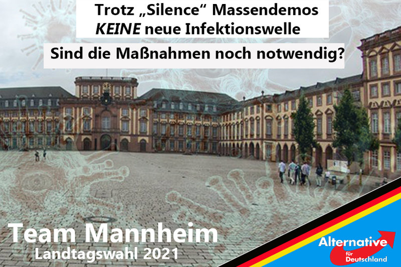 Seit Tagen stagnieren die Corona Fallzahlen in Mannheim mit knapp unter 500 Covid 19 Infizierten. Landes- und bundesweit ist ein ähnlicher Trend zu beobachten. Dies ist überraschend, denn vor 10 Tagen räkelten sich alleine in Mannheim über 6000 Menschen im Ehrenhof des Schlosses Leib an Leib bei der „Silence Demonstration“. Abstandsregeln wurden konsequent missachtet. Es wurde umarmt, Händchen gehalten und gebusselt. Man konnte den Eindruck gewinnen, Corona und die Vorsorgeregeln habe es nie gegeben.