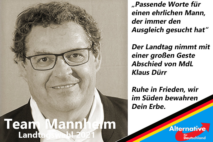 Der Landtag von Baden-Württemberg hat in seiner heutigen Plenarsitzung Abschied vom kürzlich verstorbenen AfD Abgeordneten Klaus Dürr genommen.