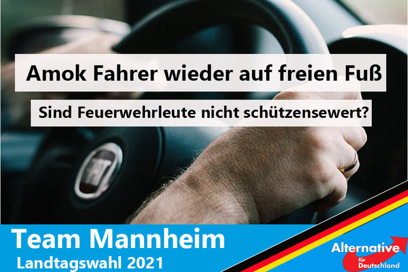 Der Fall des Amokfahrers von Mannheim, der am 13. Juli mit seinem Auto auf einen Feuerwehrmann zuraste und einen Schusswaffeneinsatz der anwesenden Polizei sowie eine Großfahndung inklusive Hubschraubereinsatz auslöste, sorgte bundesweit für Schlagzeilen. Trotz eindeutiger Faktenlage wurde heute kein Haftbefehl er- und der Täter auf freien Fuß entlassen. Der Vorsitzende der Mannheimer AfD Robert Schmidt kritisiert diese Umstand heftig. „Ein Autofahrer, der mit deutlich überhöhter Geschwindigkeit auf einen anderen Menschen zurast, nimmt eine schwere Verletzung oder gar den Tod billigend in Kauf. Bei einem derartigen Autoanschlag handelt es sich nicht mehr lediglich um eine Verkehrsstraftat, sondern um einen Angriff auf die körperliche Unversehrtheit einer Person. Die Entscheidung, den Täter freizulassen „ konterkarriert die Diskussion um Schutz von Rettungskräften und die Bemühungen, diese zu stärken. Vielmehr werden Angriffe weiter verniedlicht und Stützen der Gesellschaft zu Freiwild degradiert.“