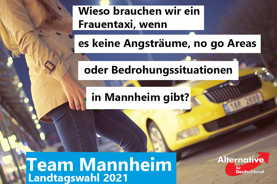 Mannheim begibt sich auf die Spurensuche der Schildbürger: Das Frauentaxi gibt Frauen ein Sicherheitsgefühl in einer Stadt, in der sie keine Angst haben müssen. Wir benötigen ein Frauentaxi obwohl "no go areas" verleugnet, Brennpunkte ignoriert und Bedrohungssituationen beschönigt werden.
