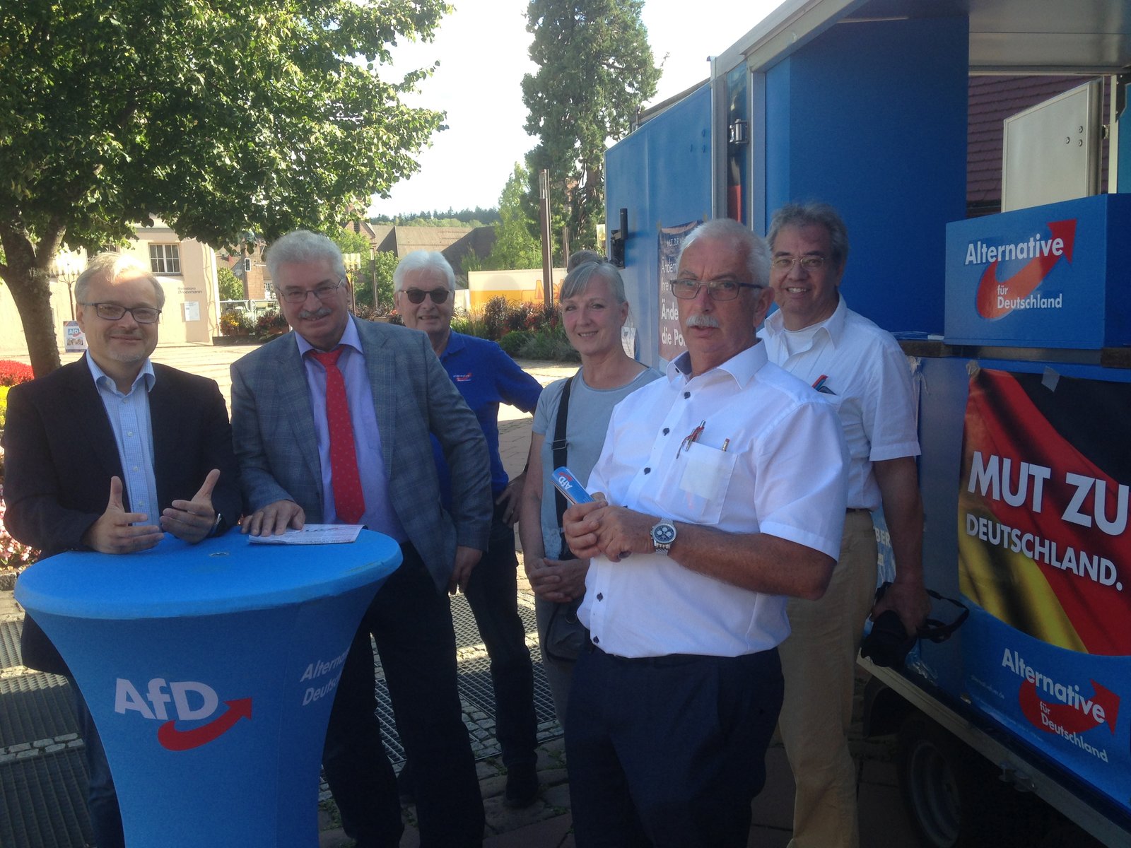 Im Rahmen ihrer Sommer-Tour durch Baden-Württemberg kamen Politiker der AfD am Montag nach Calw, Nagold und Freudenstadt. Die Bundestagsabgeordneten Marc Bernhard, Markus Frohnmaier und Martin Hess sowie Landesvorstandsmitglied Volker Kek sprachen an Info-Ständen zu Themen der Wirtschaft, der Corona-Krise, der Energieversorgung und des Naturschutzes. Sie wurden begleitet von Sprecher Günther Schöttle, den Fraktionsvorsitzenden in den Kreistagen Angelika Reutter und Uwe Hellstern sowie Geschäftsstellenleiter Norbert Richter. In Nagold kam es zu Protesten von einigen Herrenberger Antifa-Mitgliedern und von "Omas gegen Rechts". Die Polizei in Nagold hielt die Antifa auf Distanz zum AfD-Info-Stand. Die Vertreterinnen der "Omas gegen Rechts" beteiligten sich an der Diskussion mit Wortmeldungen.