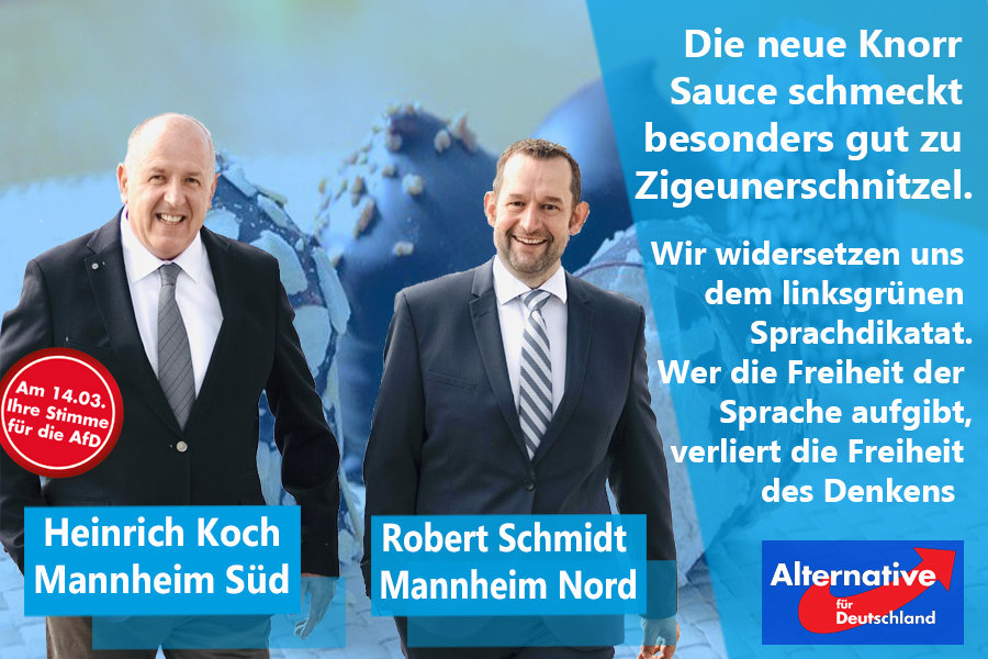 Die linksgrüne Sprachpolizei hat ein weiteres Mal zugeschlagen: Bei Knorr darf die Zigeunersauce in Zukunft nicht mehr Zigeunersauce heißen, sondern sie wird umbenannt in „Paprikasauce Ungarische Art“.  Für diese Umbenennung haben die allermeisten Bürger allerdings überhaupt kein Verständnis. Diese Posse ist aber bezeichnend für den derzeitigen Diskurs in diesem Land: Ob Negerkuss oder wie man in Mannheim sagt: Mohrenkopf , Sarottimohr oder Zigeunerschnitzel: Wir müssen uns dem Willen einer kleinen, aber lautstarken und medial verhätschelten, linken Minderheit beugen.