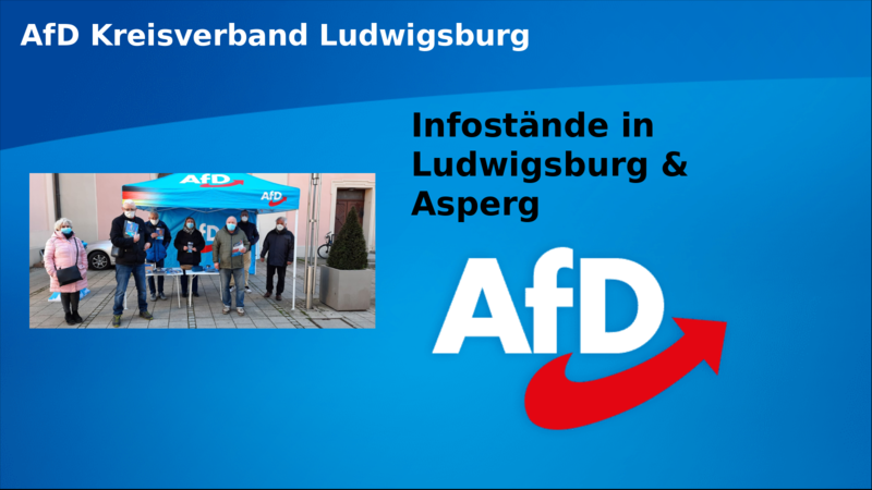 Bei kalten Temperaturen und herrlichem Sonnenschein hieß es auch am heutigen Samstag für den Kreisverband Ludwigsburg: Raus zu den Bürgern! Diesmal waren wir in Ludwigsburg und Asperg mit jeweils einem Infostand vor Ort. Mit dabei waren natürlich große Teile des Kreisvorstandes, MdB Martin Hess, sowie Landtagskandidat Friedemann Meyer.