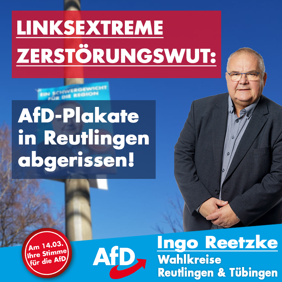 Linksextreme Zerstörungswut: AfD-Plakate in Reutlingen abgerissen
