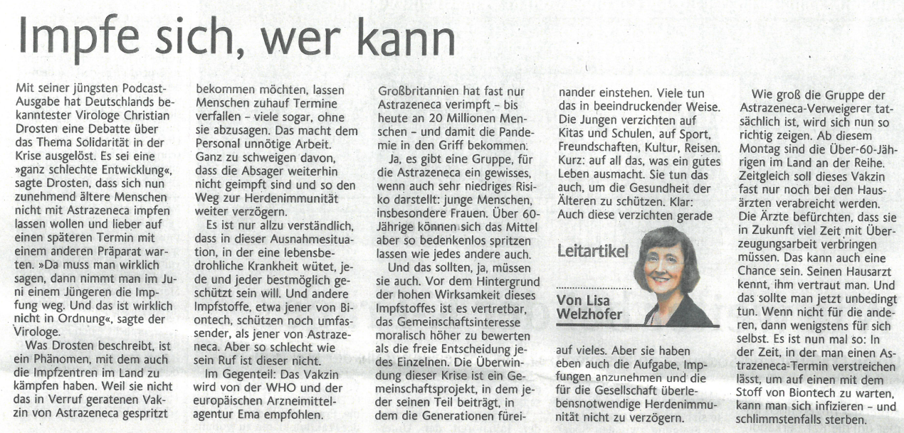 Leitartikel vom 19.04.2021 „Impfe sich wer kann“