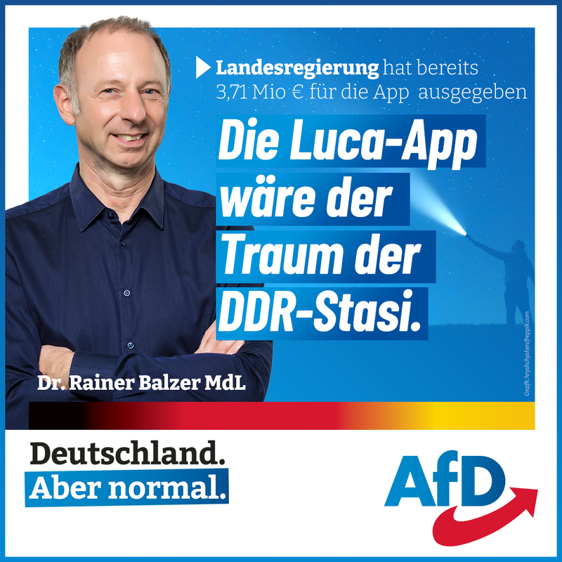 Apps zur zentralen Massenüberwachung der Bevölkerung wären übrigens der Traum der „Staatssicherheit“ der DDR gewesen. Auch unter Kretschmann und Merkel dürfen sie nicht zum Alltag in Deutschland werden. Wir werden uns daher weiterhin gegen eine wie auch immer geartete Verpflichtung zur Verwendung von Tracing-Apps einsetzen.