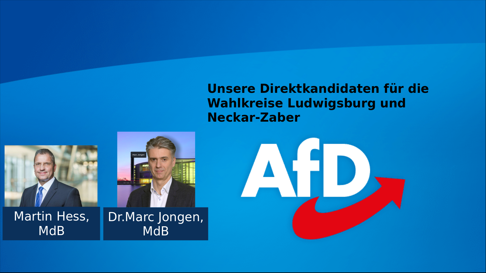Der Kreisverband Ludwigsburg freut sich darauf, unter dem Motto "Deutschland. Aber normal.", mit diesen zwei verdienten und engagierten Kandidaten in den Bundestagswahlkampf 2021 zu gehen.