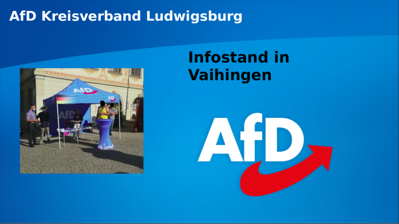 Deutschland. Aber normal. Unter diesem Motto besuchte der Kreisverband Ludwigsburg am vergangenen Samstag den Marktplatz im schönen Vaihingen. Große Teile des Kreisvorstands, sowie einige engagierte Mitglieder beantworteten Fragen und brachten Wahlprogramme und Flyer unter die Marktbesucher.