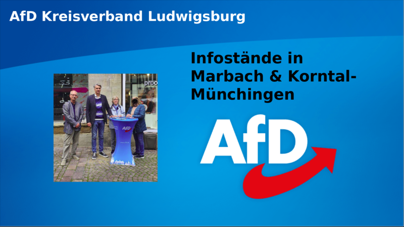 Am vergangenen Samstag hat es den Kreisverband Ludwigsburg nach Marbach und nach Korntal-Münchingen verschlagen. In der Marbacher Fußgängerzone und auf dem Münchinger Marktplatz standen wir den Bürgern Rede und Antwort.