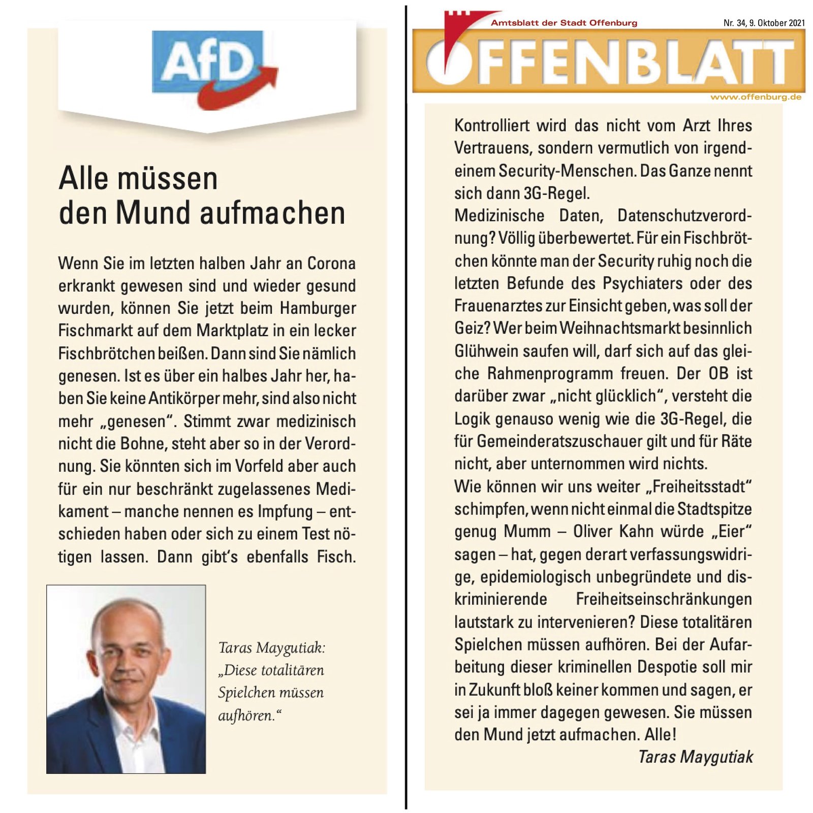 Nach der Bundestagswahl gibt's im OFFENBLATT, dem Amtsblatt der Stadt Offenburg, endlich wieder das "Meinungsforum". Hier der Beitrag der Ausgabe vom 9. Oktober 2021.