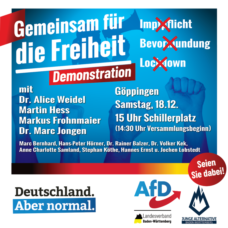 Mehr als eintausend Menschen sind am Samstag, den 18.12.21, nach Göppingen gekommen, um mit uns gemeinsam ein starkes Zeichen für die Freiheit und Grundrechte in diesem Land zu setzen.