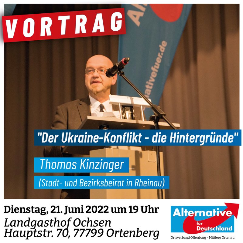 Diesmal bieten wir bei unserem Treffen der „Alternative für Deutschland“ einem Vortrag von Thomas Kinzinger (Stadt- und Bezirksbeirat in Rheinau) mit dem Titel: