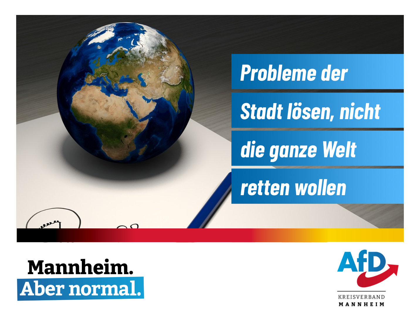 Der Anteil Deutschlands an den weltweiten CO2-Emissionen beträgt weniger als 2% und die Emissionen der Stadt Mannheim sind im weltweiten Maßstab verschwindend gering - also irrelevant. Dennoch verfolgt die Stadt Mannheim mit viel Geld und personellen Ressourcen das Ziel, bis 2030 „klimaneutral“ zu werden.
