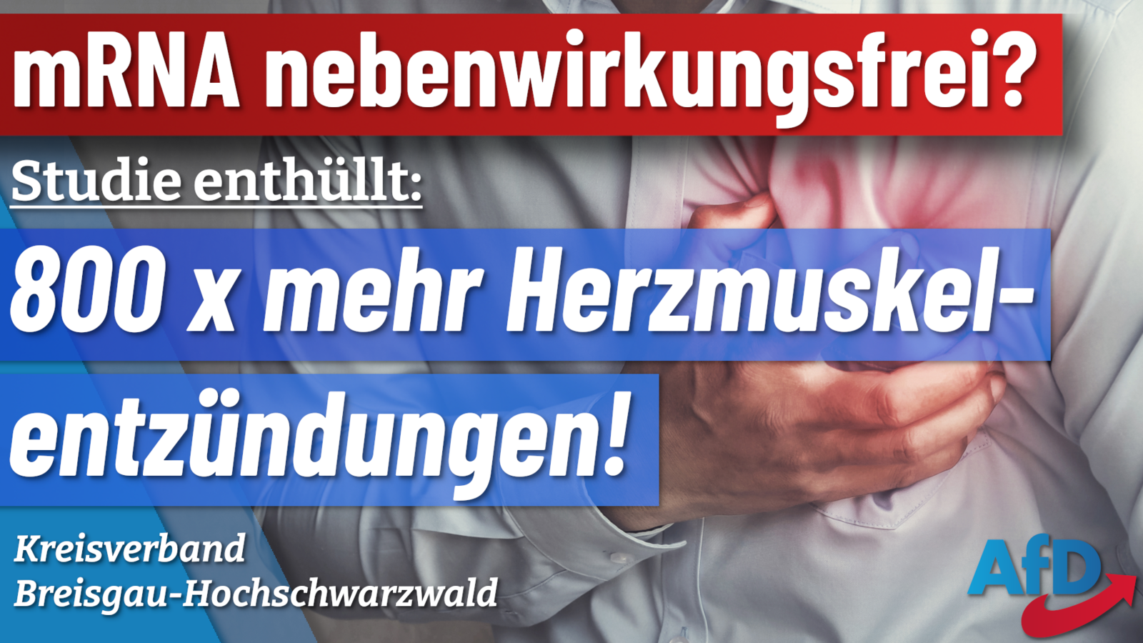 Nebenwirkungsfrei sollte sie sein, so versprach es der Gesundheitsminister. Dann weichte man diesen Begriff sukzessive auf. Jetzt seien es nur wenige Nebenwirkung und diese auch nicht so schwer wie Corona selbst. Eine Studie enthüllt nun, dass die Wahrscheinlichkeit eine Herzmuskelentzündung zu erleiden bis zu 800-mal höher ist, als bisher propagiert. Da man nun die Nebenwirkungen nicht mehr negieren kann, verharmlost man sie. Man nennt sie „milde“ Herzmuskelentzündungen. Hier ein kurzes Zitat zur Prognose einer Herzmuskelentzündung. Diese Prognose setzt aber auch voraus, dass diese Entzündung erkannt wurde, was leider sehr häufig gerade bei jungen Menschen nicht der Fall ist.