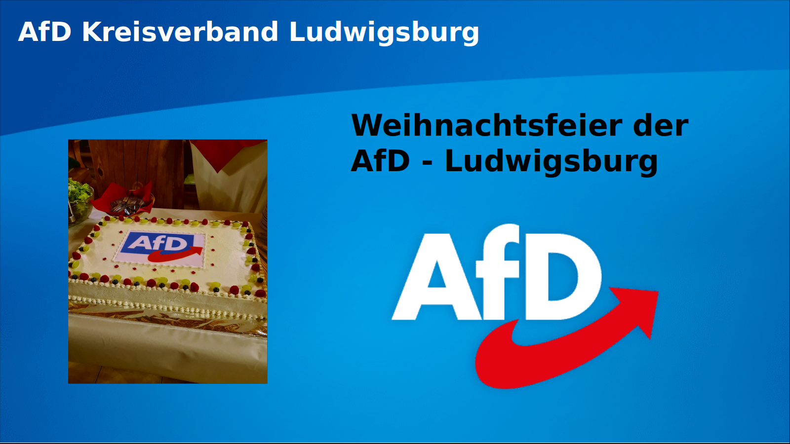 Endlich war es wieder soweit. Die Weihnachtsfeier der AfD Ludwigsburg konnte gestern stattfinden. Zahlreiche Mitglieder, Freunde und Förderer der Alternative für Deutschland wollten das Jahr zusammen mit dem Kreisvorstand ausklingen lassen. Nicht wenige brachten Freunde und Familie mit. Am Ende waren fast 80 Gäste vor Ort, um das Jahr gemeinsam ausklingen zu lassen.