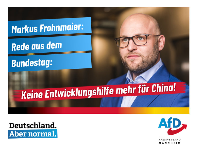 Als AfD-Fraktion fordern wir ganz klar: Die Entwicklungshilfe für China und andere aufstrebende Wirtschaftsmächte muss endlich beendet werden!