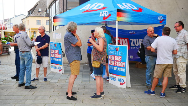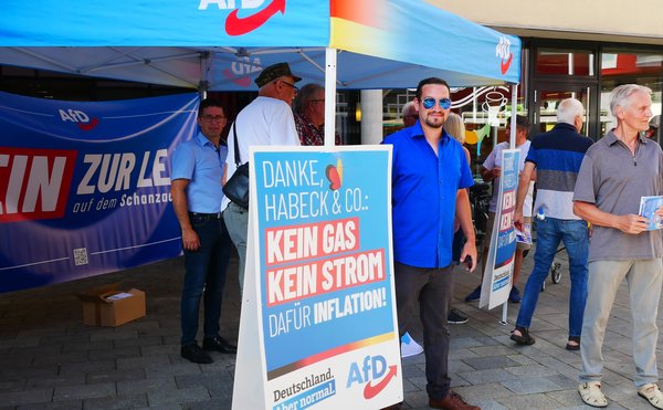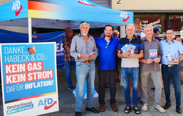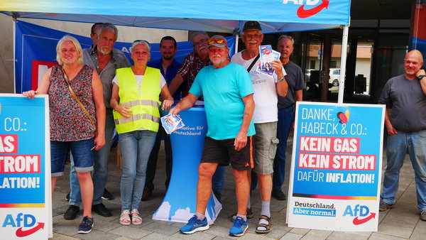 Die sensationellen Umfragewerte der AfD spiegeln sich auch auf der Straße wider. Immer mehr Bürger kommen mit uns ins Gespräch und bekunden ihren Zuspruch. Natürlich sind auch Nachfragen und konstruktive Kritik ausdrücklich erwünscht. Aber eines kann jetzt schon gesagt werden: Der Wind dreht sich! Die Bürger merken, dass es eben doch eine Partei gibt, die Politik für die eigenen Bürger macht. Die Alternative für Deutschland.