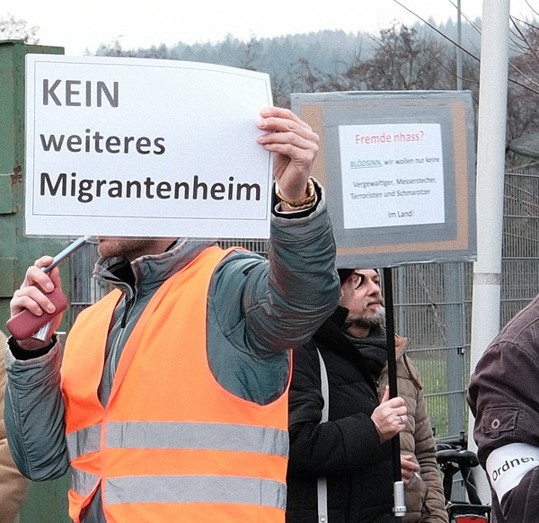 4. Der Südkurier: „Vor sich her trugen die AfD-Mitglieder und Sympathisanten Plakate, auf denen Parolen wie «Wir wollen keine Vergewaltiger, Messerstecher, Terroristen und Schmarotzer in unserem Land» standen.“ Und weiter unten: „Darf sich ein Lehrer öffentlich als Galionsfigur für solche rechtsradikalen Parolen hinstellen?"
