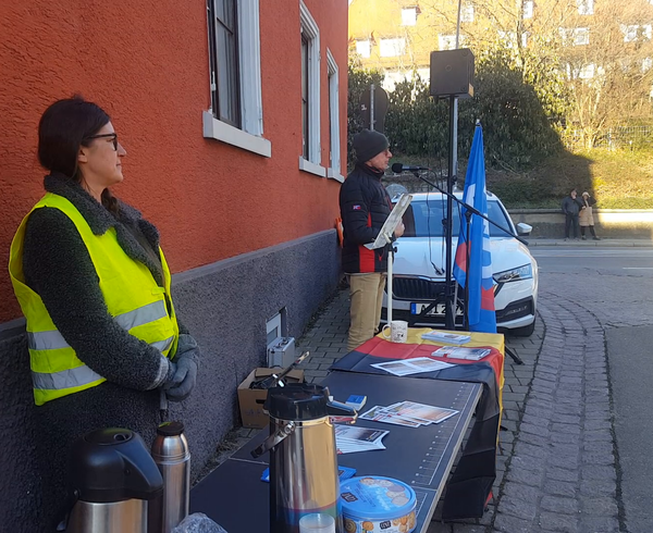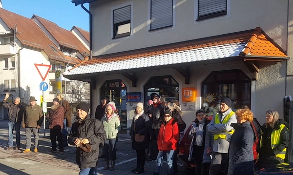 Widerstand ist nichts für Waschlappen. Wenn es darum geht, unseren Lebensraum vor der Zerstörung zu bewahren, informieren wir zur Not die Bevölkerung auch bei Kältegraden im Freien. So geschehen am Samstag in Betenbrunn bei Heiligenberg (siehe Bild links oder oben) und am Sonntag in Markdorf: