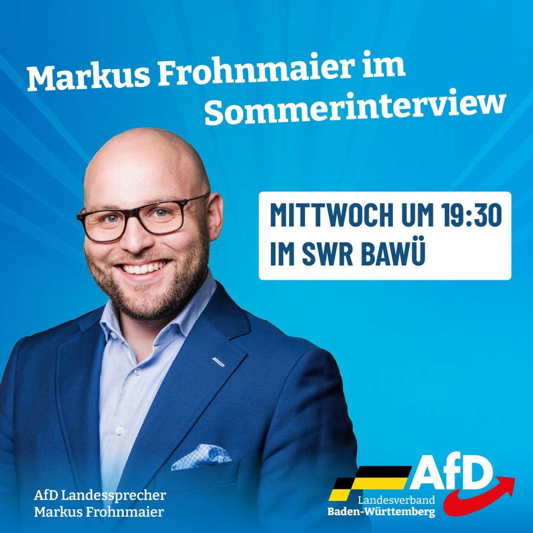 Am Mittwoch, 31.08.2024 um 19.30 Uhr ist Markus Frohnmaier im Sommerinterview bei SWR.