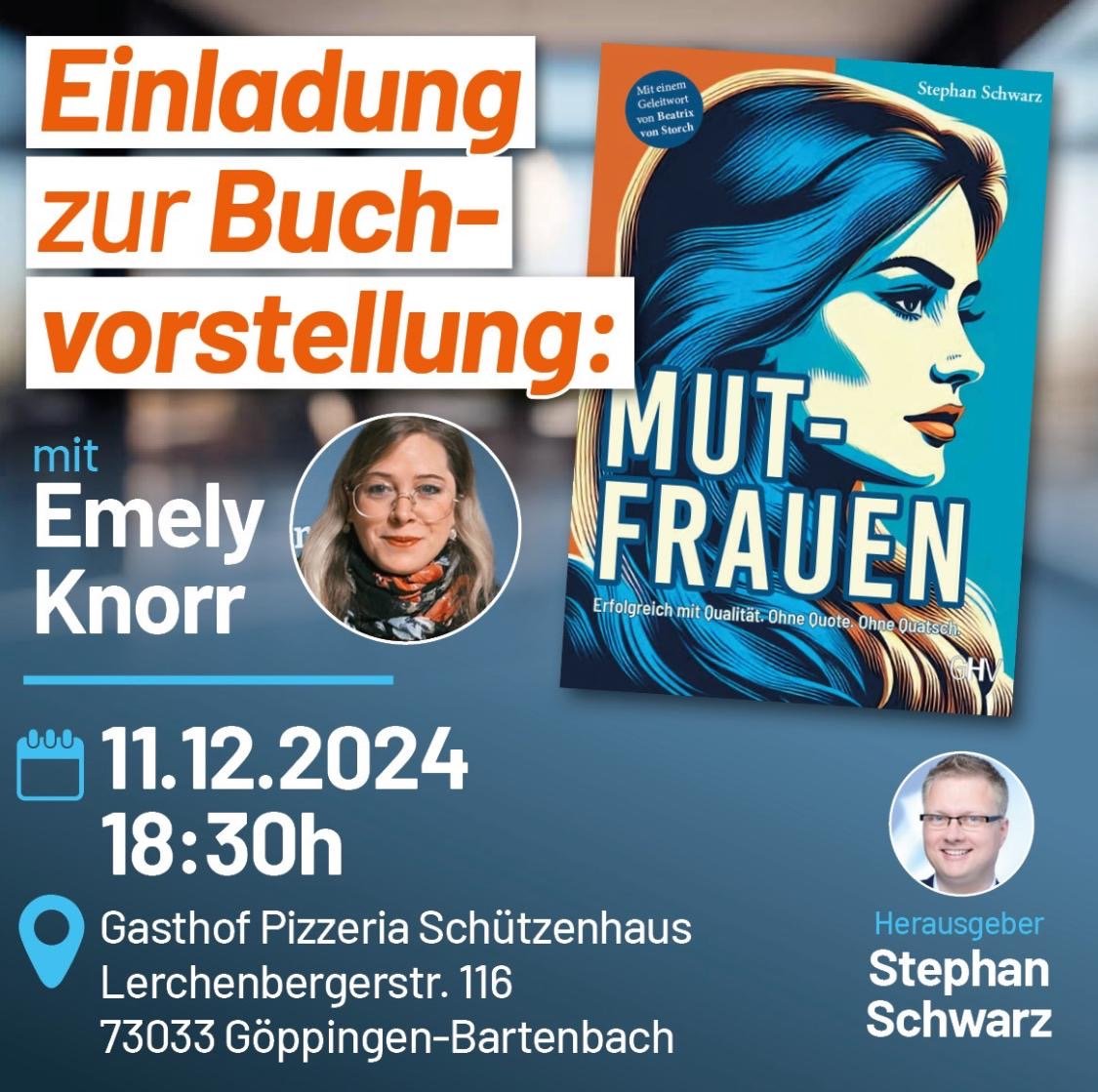 Nächste Woche dreht sich alles ums ? Buch. Das Buch „Mutfrauen“ aus Volker Münz seinem „GHV Gerhard Hess Verlag “ wird nächste Woche zum Stammtisch in Göppingen-Bartenbach vorgestellt. Live dabei der Herausgeber Stephan Schwarz und eine echte #MutFrau.