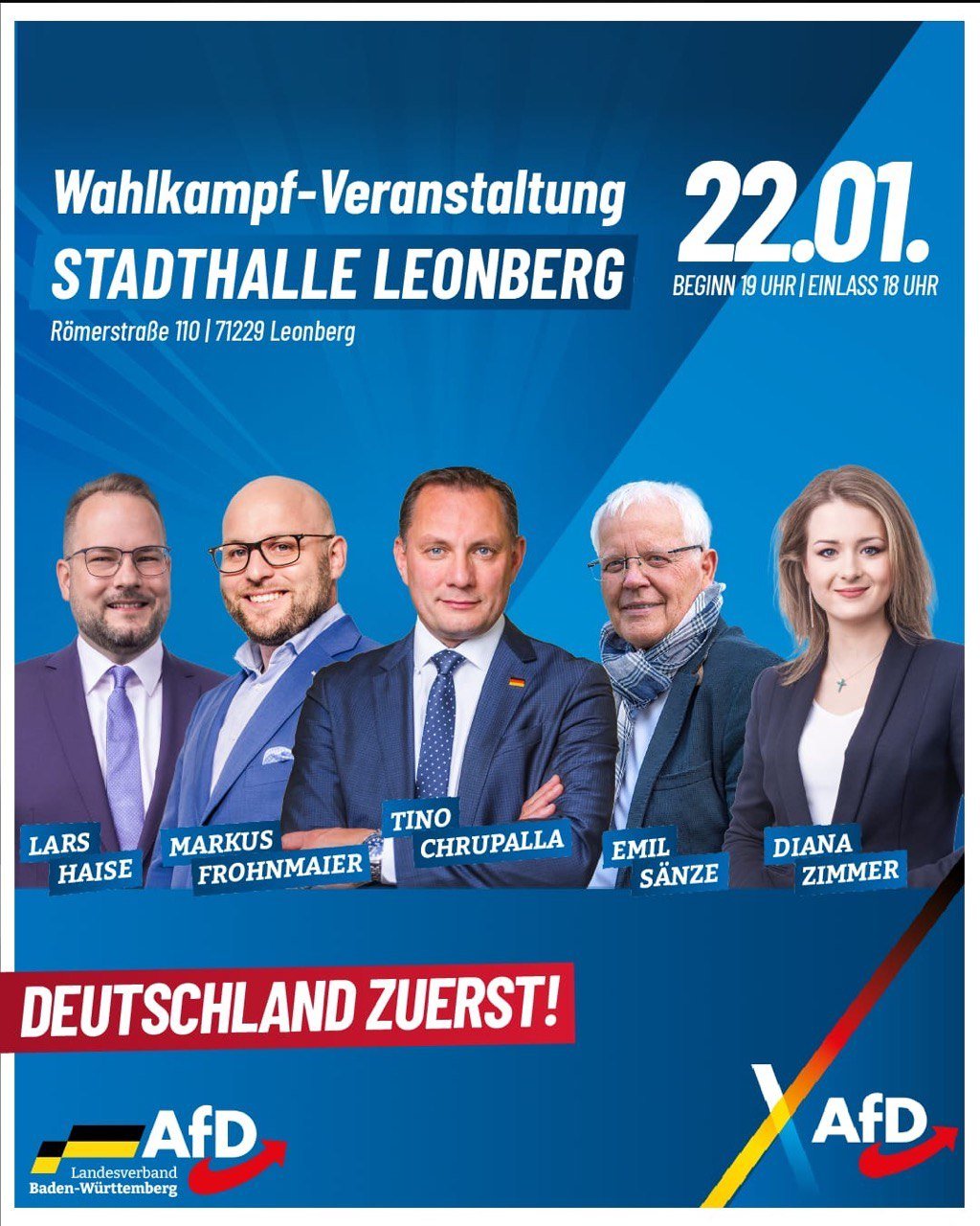 Wir laden Sie zu Wahlkampfveranstaltung am 22.01.2025 nach Leonberg ein und freuen uns auf Sie!