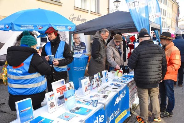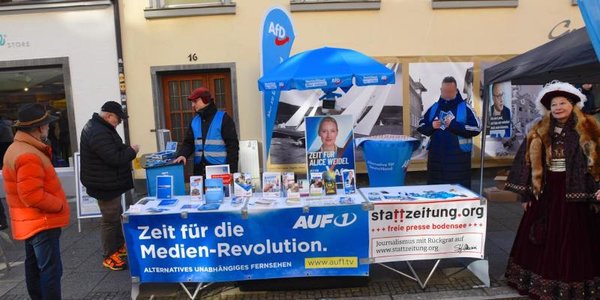 Für wen Überlingen zu weit weg liegt, der findet auch an anderen Orten im Bodenseekreis AfD-Infostände, beispielsweise ebenfalls samstags in Friedrichshafen:
