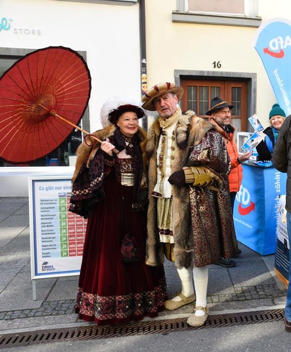 „Renaissance“ ist das AfD-Wahlprogramm in einem Wort. Wir wollen zur Normalität zurück, an die guten Zeiten von früher anknüpfen und uns die Zukunft nicht nehmen lassen. So haben wir heute am Überlinger Infostand die staunenden Wochenmarktbesucher mit zwei Botschaftern aus der Renaissance begrüßt. Schön wart ihr wieder, Sylvia und Henrik, und wir sind schon gespannt auf nächste Woche!