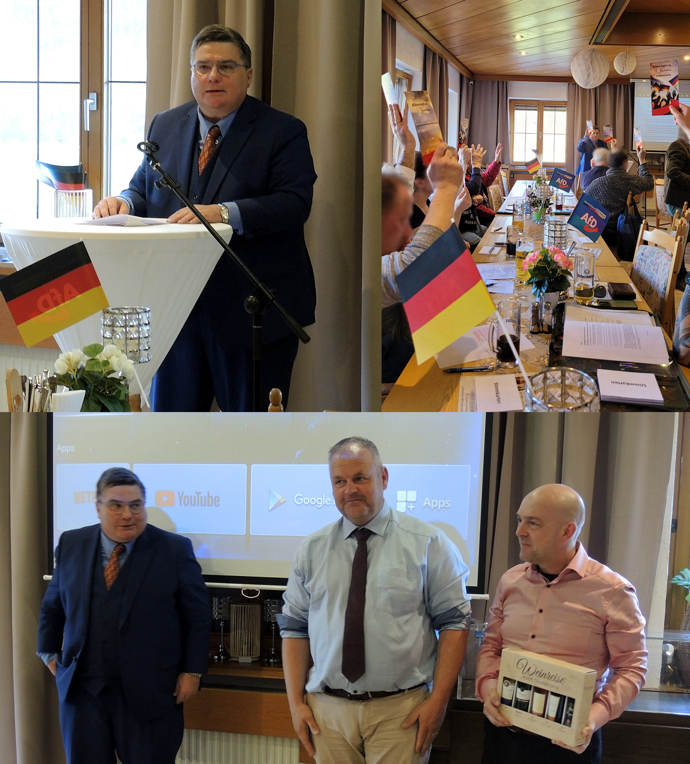 Zahlreiche Mitglieder des AfD Kreisverbands Heidenheim folgten der Einladung zur diesjährigen Kreismitgliederversammlung. Es wurde über verschiedene Änderungsanträge der Satzung abgestimmt. Der Kreisvorsitzende trug den Rechenschaftsbericht des Vorstandes vor. Hervorzuheben war der enorme Mitgliederzuwachs des AfD Kreisverbandes Heidenheim. Darauf hin folgte der Bericht des Schatzmeisters und auch das als korrekt attestierte Ergebnis der Rechnungsprüfung, sowie die Entlastung des Vorstandes. Wichtiger Tagesordnungpunkt war auch die Neuwahl des Vorstandes. Der bisherige Kreisvorsitzende Jochen Afheldt wurde mit 100 % Zustimmung aller stimmberechtigten Mitglieder zur Wiederwahl als erster Vorsitzender aufgrund seiner bisherigen herausragenden Arbeit für den Kreisverband erneut bestätigt. Desweiteren wurde der Gemeinderat und AfD Fraktionsvorsitzende im Heidenheimer Kreistag, Heiko Röllig, als stellvertretender Vorsitzender gewählt. Weiterhin wurden der Schatzmeister, Schriftführer, vier Beisitzer, wie auch zwei Rechnungsprüfer gewählt.