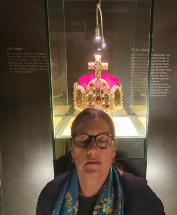 Spaßbilder mit den Insignien der Macht vergangener Zeiten.