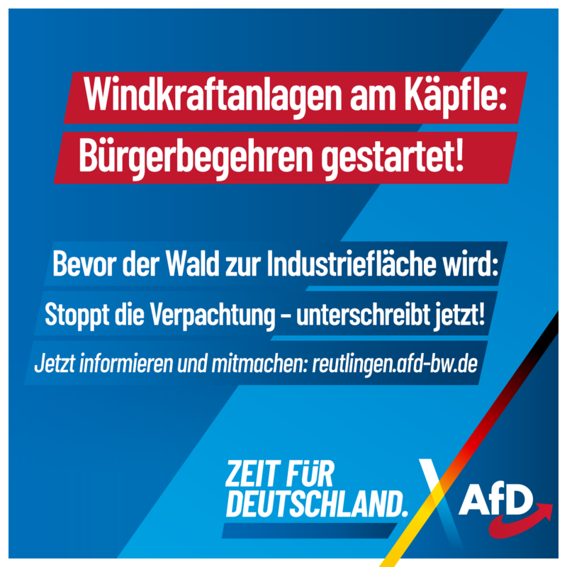 „Die Stadtverwaltung hält ein Bürgerbegehren zu dieser Thematik nicht für ‚ideal‘, was auf gut Deutsch nichts anderes heißt, als dass Mitbestimmung durch die Bürger politisch nicht gewünscht ist. Genau das motiviert uns umso mehr, dieses Begehren mit aller Kraft voranzutreiben“, erklärt Maximilian Gerner, Landtagskandidat der AfD im Wahlkreis Reutlingen und Kreissprecher des AfD Kreisverbands.