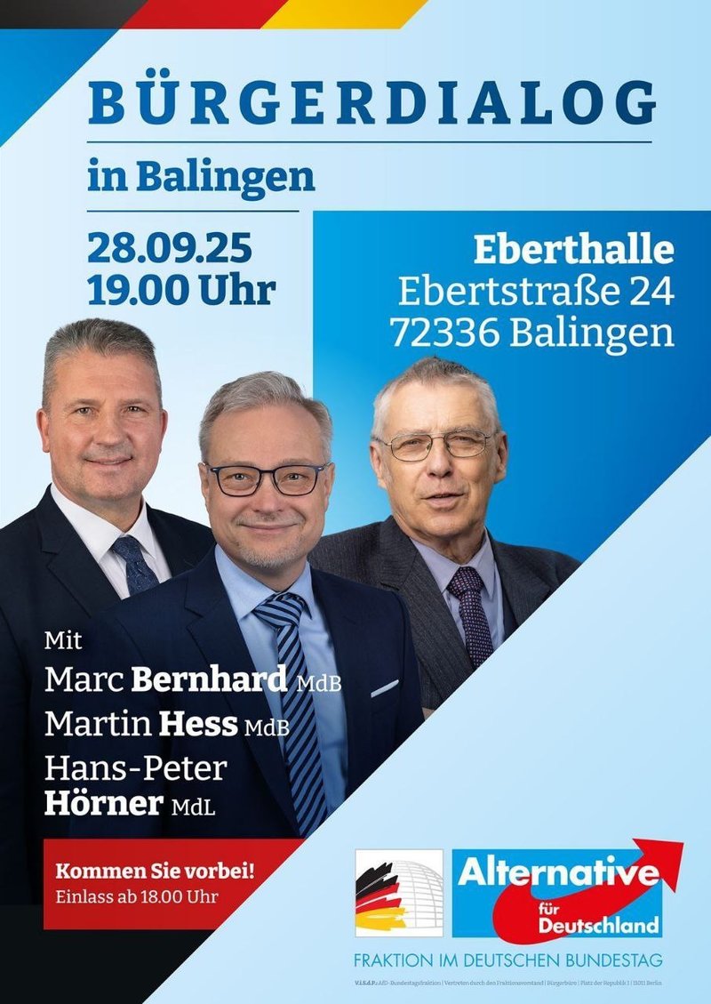 Am 28.09.2025 ist unser Kreisvorsitzender und MdB Martin Hess beim Bürgerdialog in Balingen.