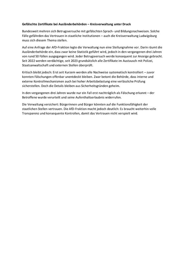 Gefälschte Zertifikate bei Ausländerbehörden – Kreisverwaltung unter Druck